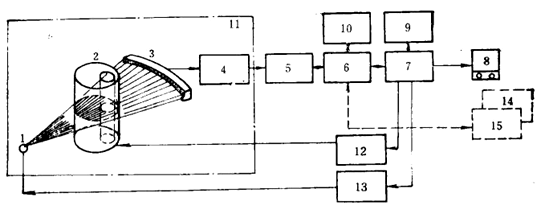計(jì)算機(jī)斷層掃描技術(shù),簡(jiǎn)稱CT(Computertomography)。它是根據(jù)物體橫斷面的一組投影數(shù)據(jù),經(jīng)計(jì)算機(jī)處理后,得到物體橫斷面的圖象。其裝置結(jié)構(gòu)如圖4所示。