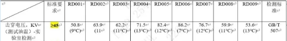 本次測試嚴(yán)格按照該標(biāo)準(zhǔn)進(jìn)行,油介電強度測試數(shù)據(jù)如下: